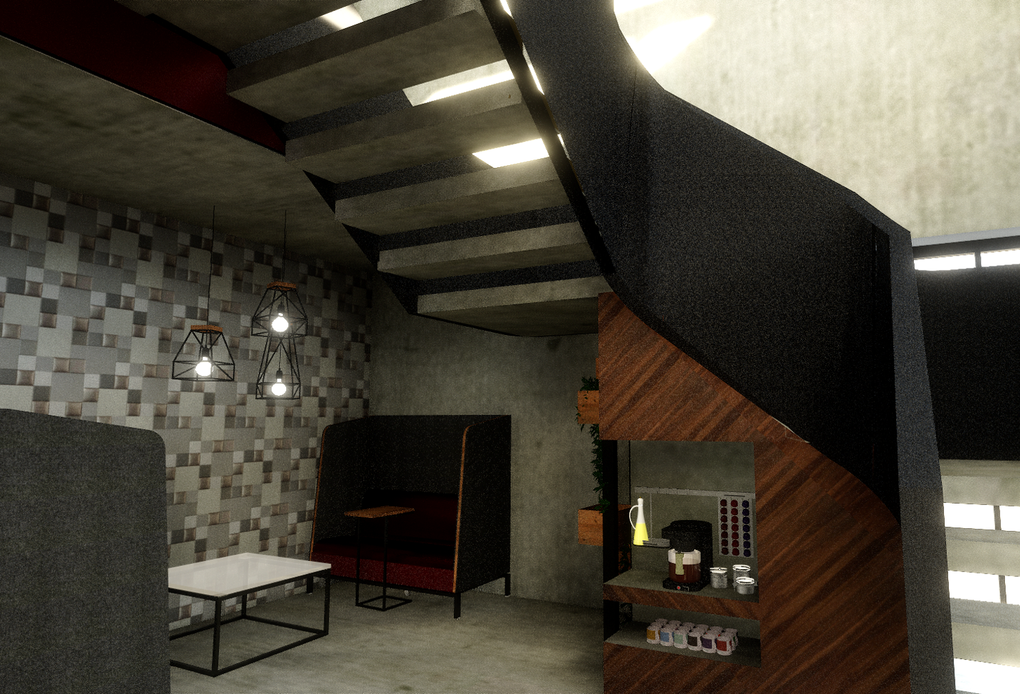 She created playful interactive spaces incorporating a put-put course, Photo studio and coffee nook as well as work spaces using Entrawood office furniture ranges. Micaela also prepared a VR walk through, but unfortunately we ran out of time, so excited to see it on our next visit!