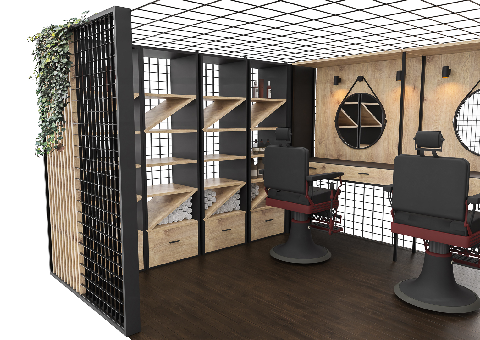 Another great conceptual design where we have used the backdrop range as a shop-fitted product display, storage and counter for a hair salon. But the kicker is, it is ALL free-standing, no drilling walls, or cutting board on-site, just super easy installation, and breakdown if your client ever needs to move premises! The backdrop range is customisable, as a designer you really have so many opportunities to create a fantastic shop installation.
