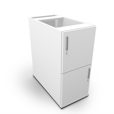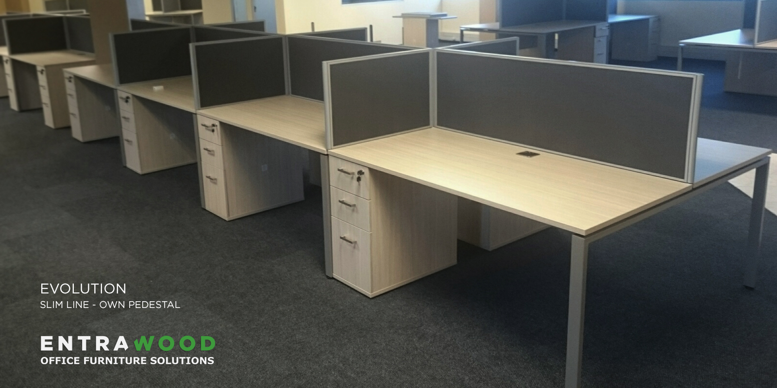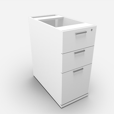 The pedestal forms one of the desk legs/supports. By placing these desks (single or dual desks) in a benching sequence gives each worker sufficient desk space and localised storage, whilst maximising the available floor space.