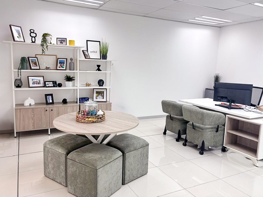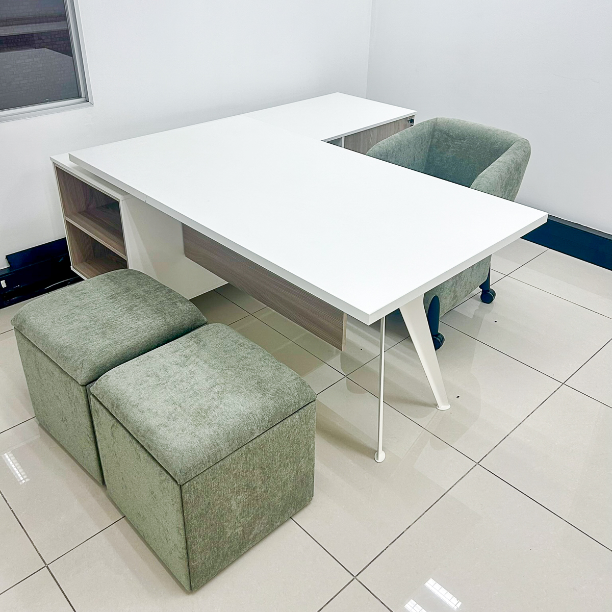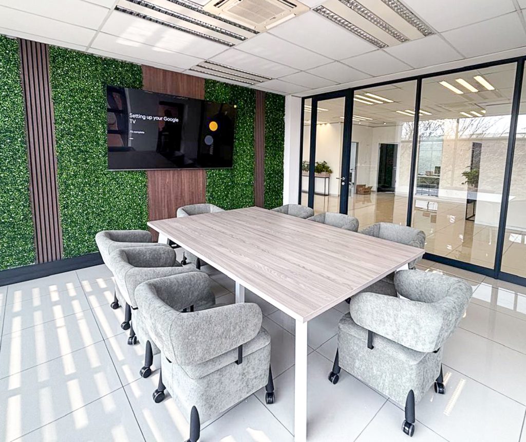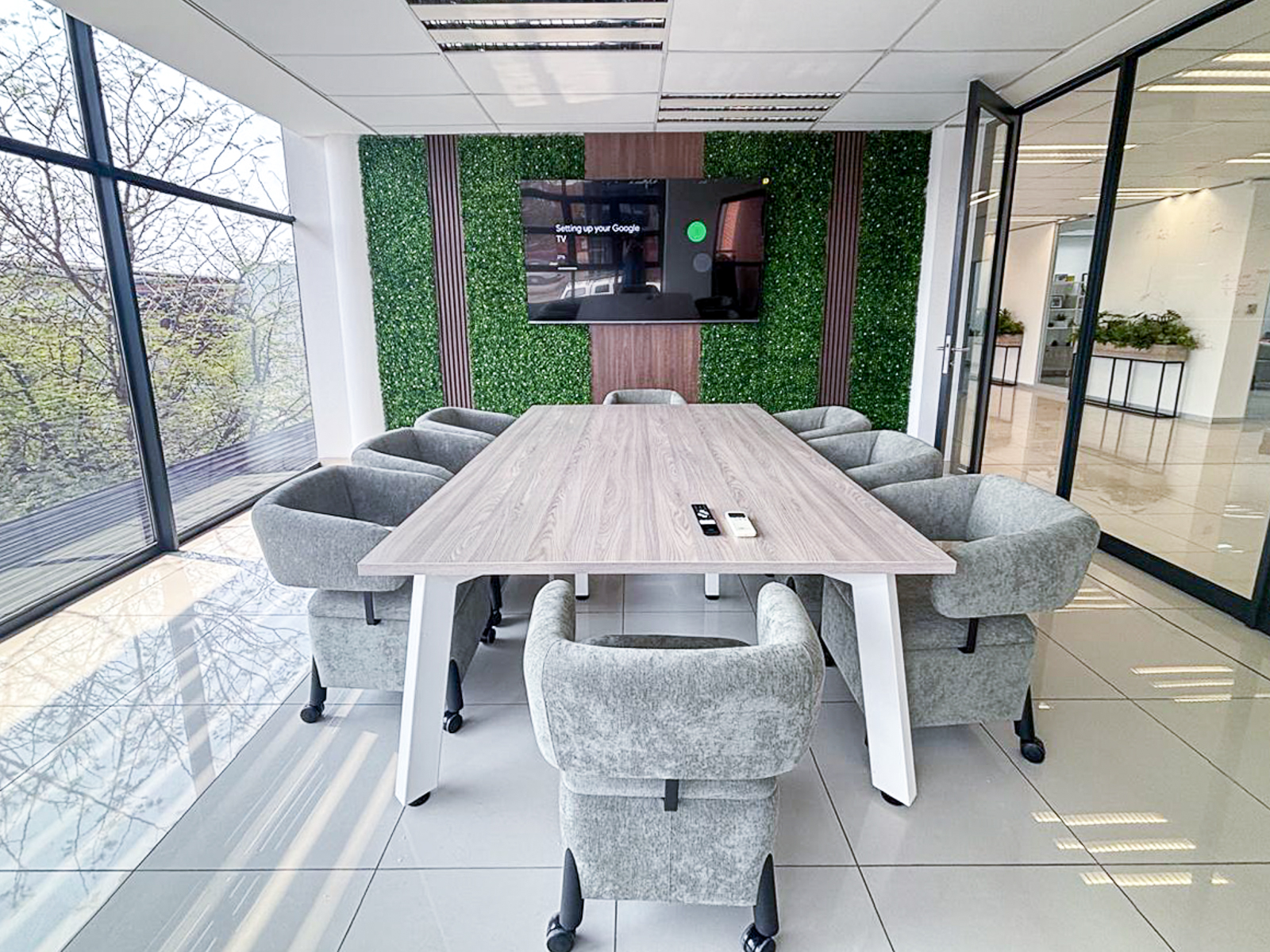 The client wanted a light & calm office space that exudes quiet sophistication. To get the look, we used a combination of the Evolution range in the open plan with planters. The lounges consist of Envy 2 seater, salon chairs and coffee tables. Private offices have opera desks and an opera server, while the meeting room combines a custom-sized Tribe table with Rocket chairs and a fantastic view!