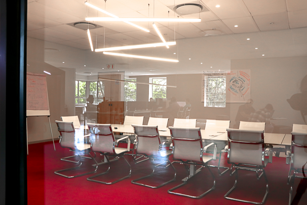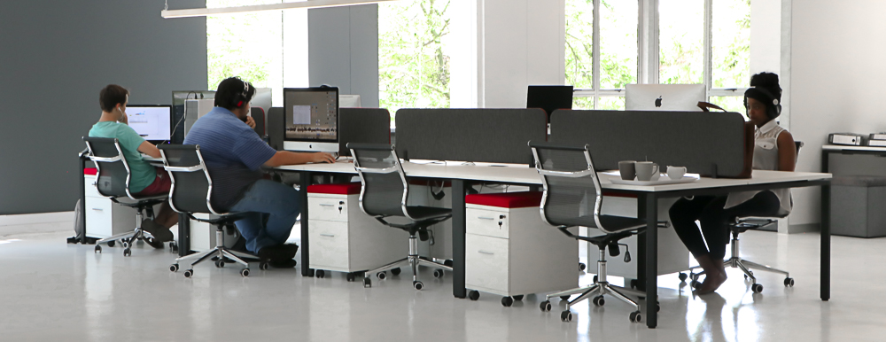 The executive and manager offices have shell executive desks, side storage, and bookcases – a splash of indulgence. It was such a pleasure working with a creative team an appreciation for the “white space” as well as a flair for the dramatic, seen in the high-contrast use of colour.