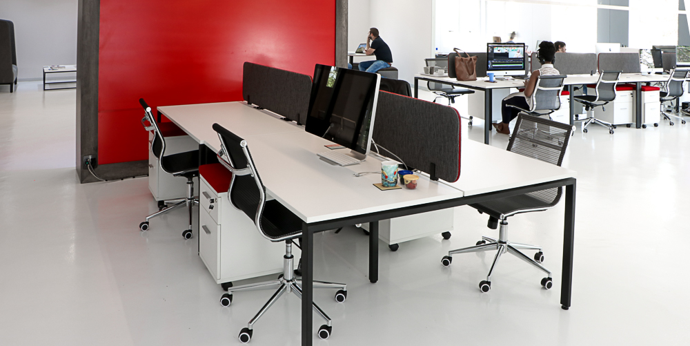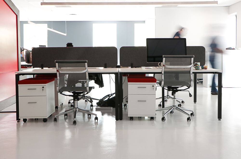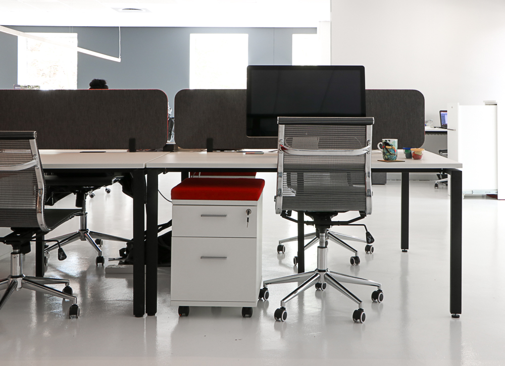 The Evolution Range with black frame, white tops combined with the cocoon screens in a Dark grey with the red strip, is the perfect compliment to a space that is both clean and comfortable.