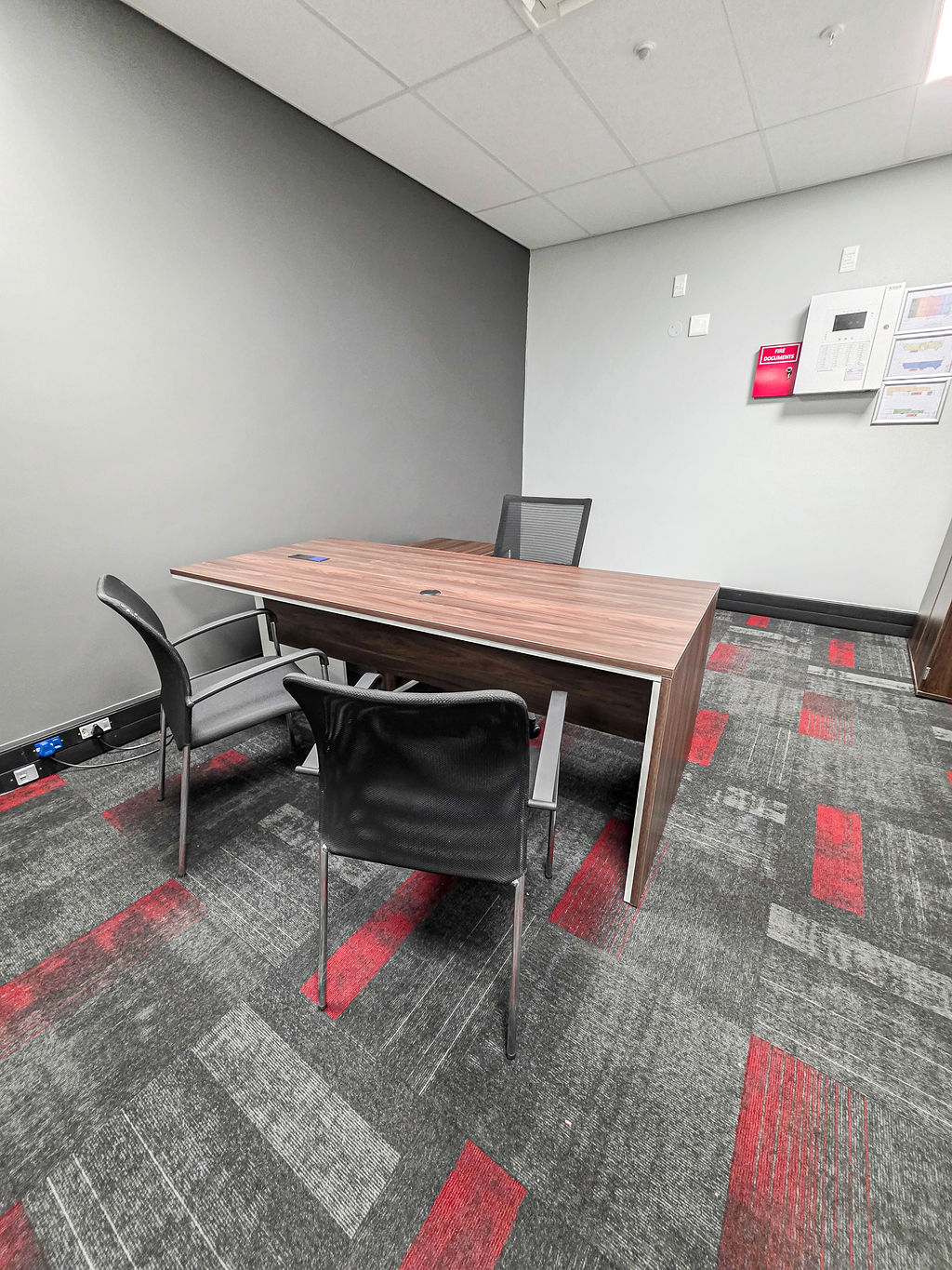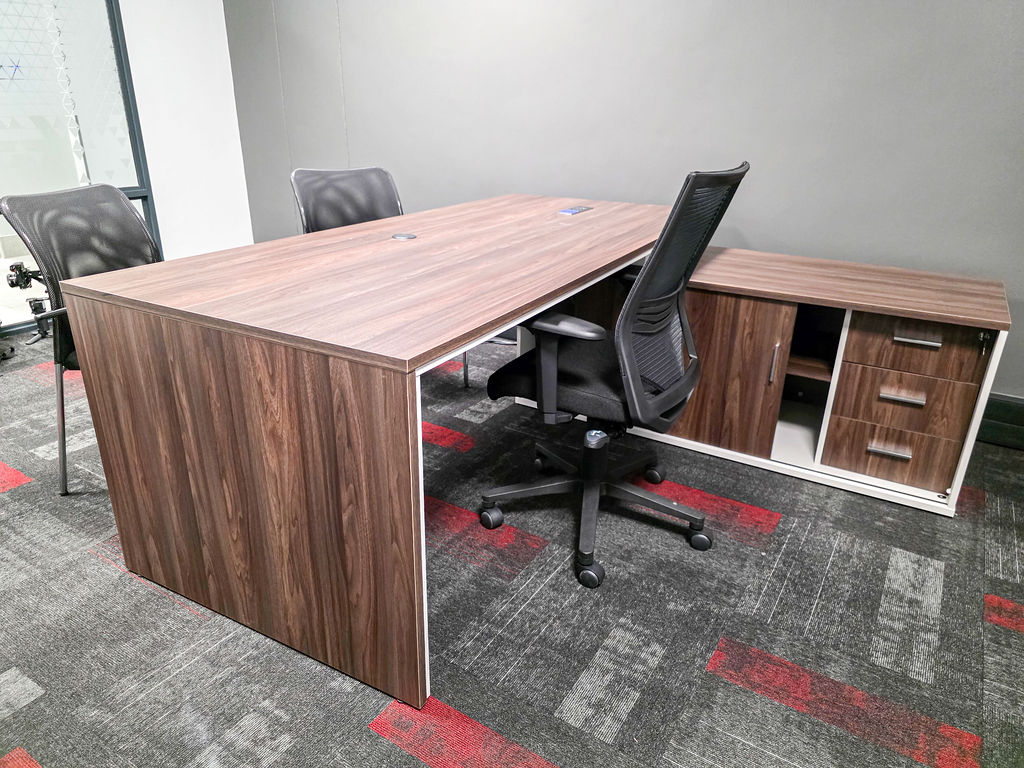 The Juno Executive desk with side storage for the private offices also has a power solution incorporated into the desktop.