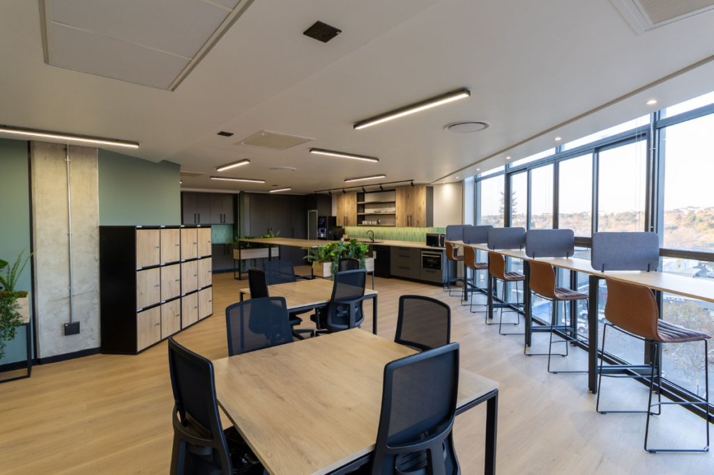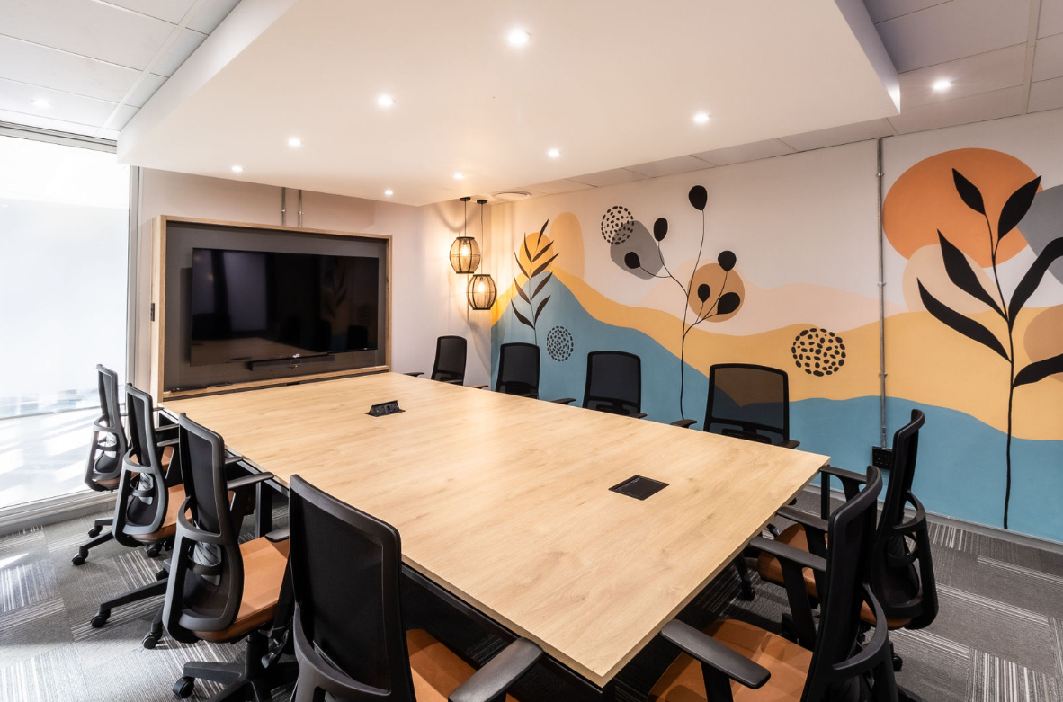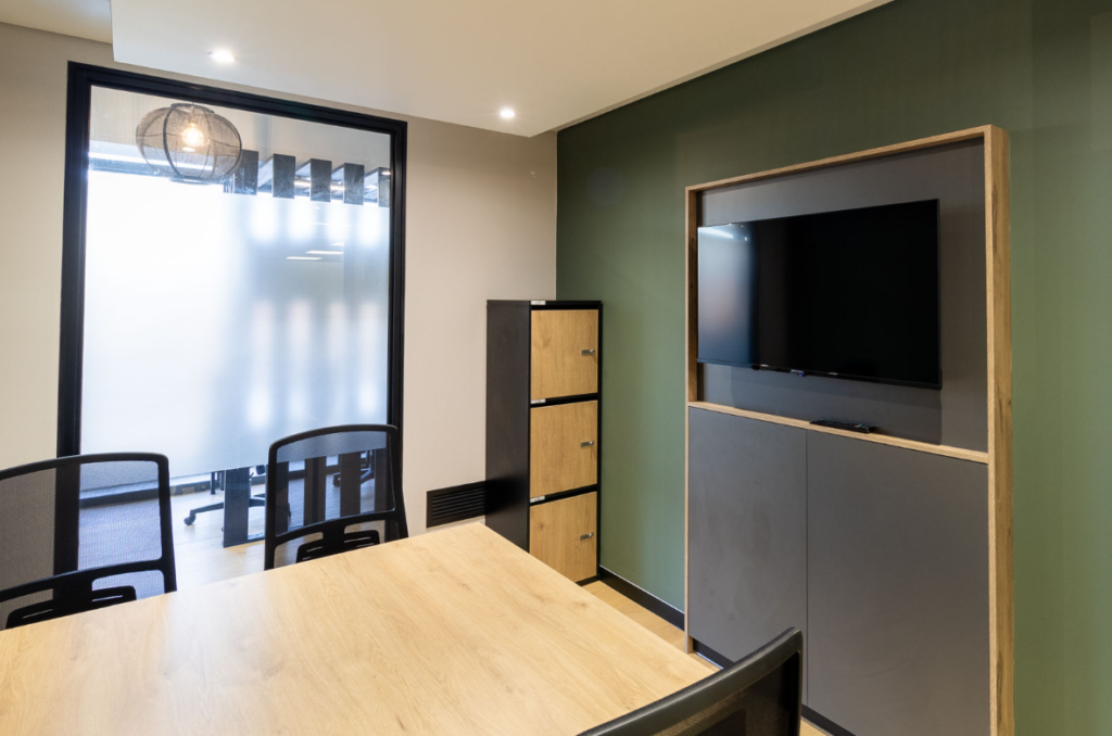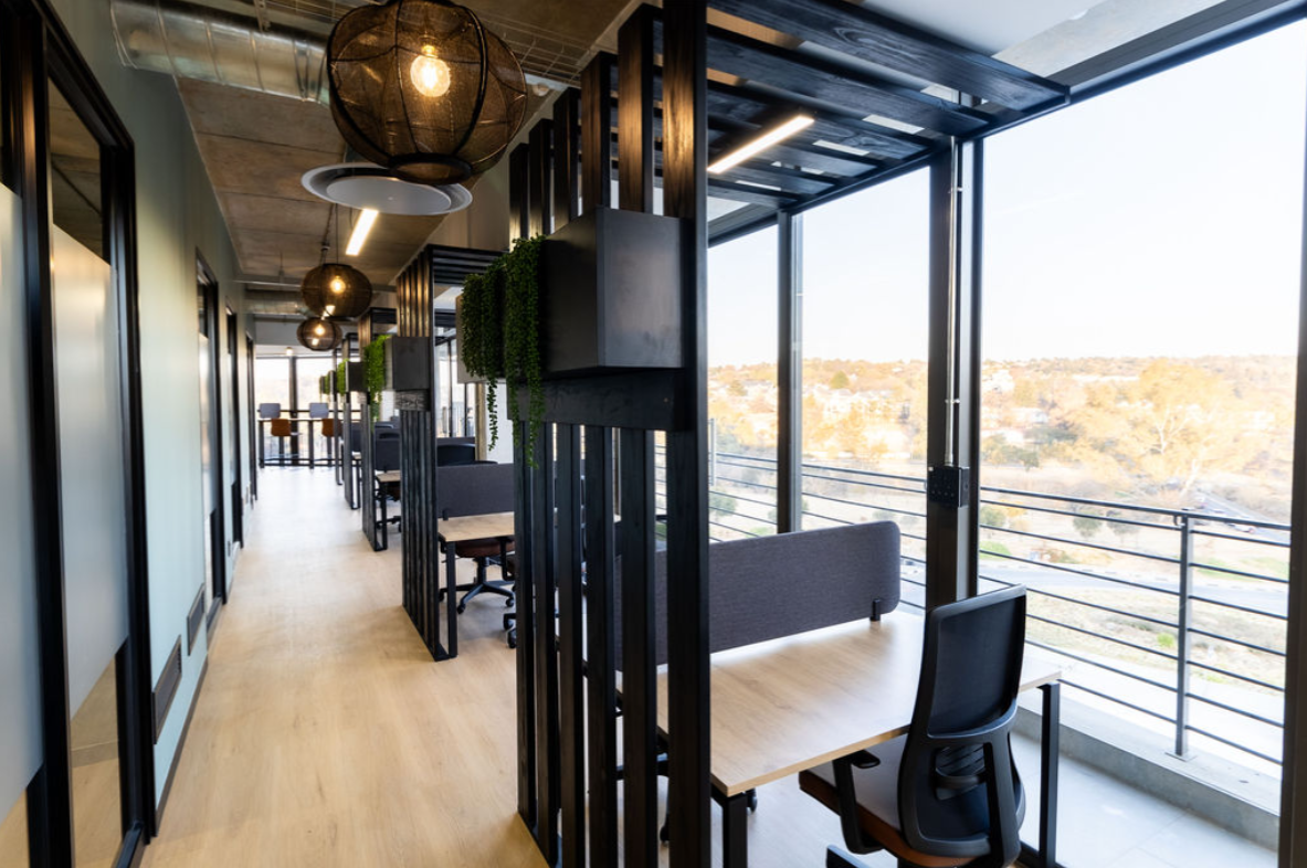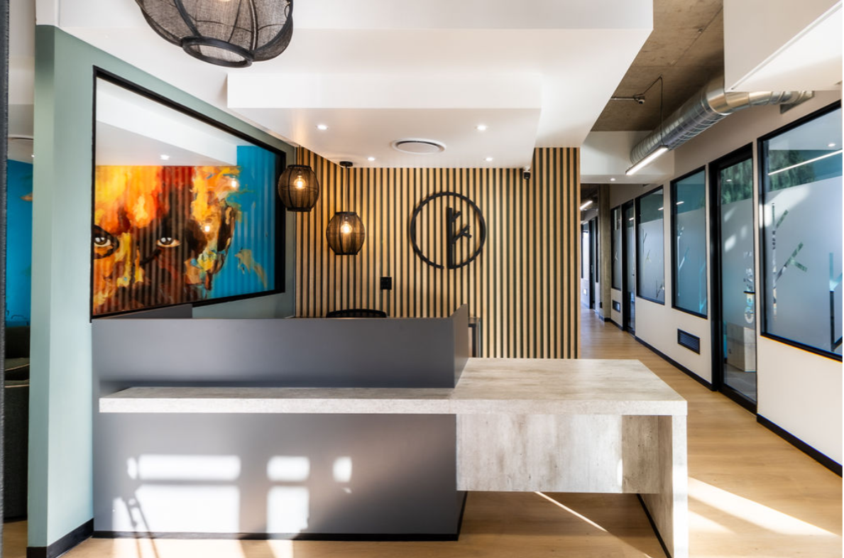 We aimed to create a space that felt natural but far from boring. The contrast between the Black Matt verticals and the Light Wood Grain horizontals worked beautifully with the colour palette and finishes that Elmie, from LAWKI, envisioned in her mood boards. The screen fabric added the perfect touch of softness, while the brown leather accents on the Sandton view desks and boardroom tables tied everything together, especially with the splash of green in the carpet. The result is a space that’s both sophisticated and inviting.