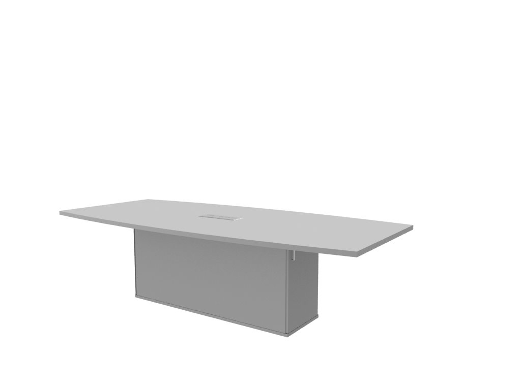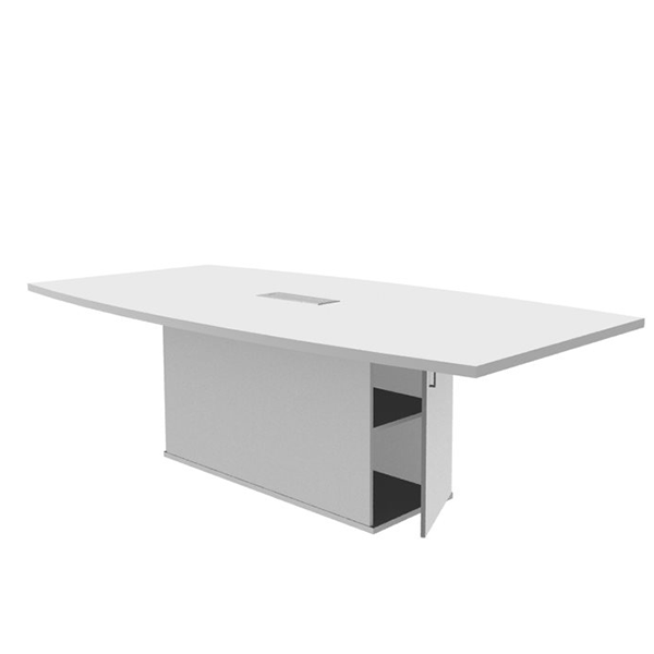 The Reticulated boardroom table sits on a storage box leg and includes a hatch and cable tray for easy connection.