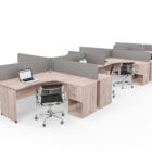 Platinum cluster desks can be paired with a desk height pedestal and extension top. “Cluster” 4 such workstations together to create a 4-way, and add screens for some privacy.