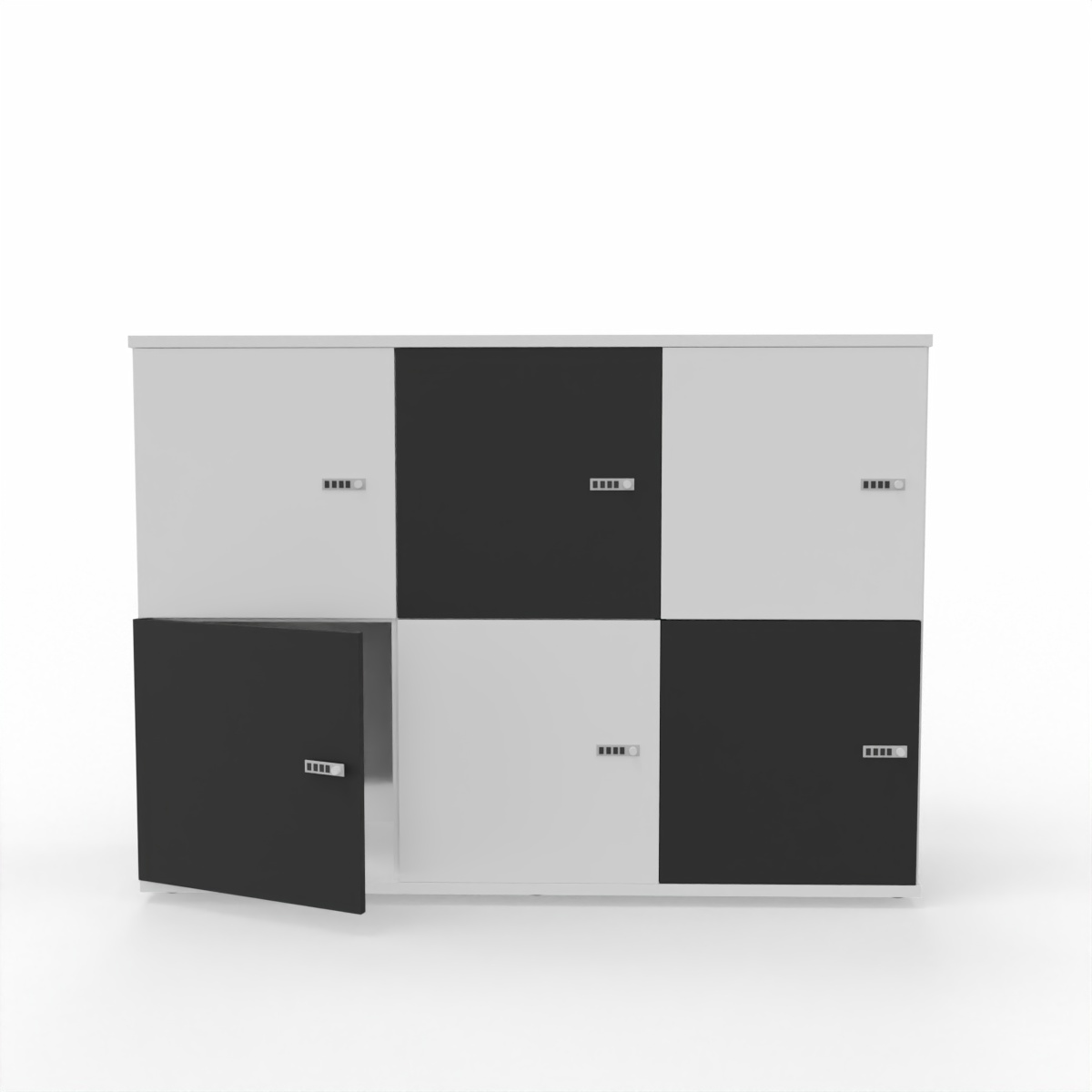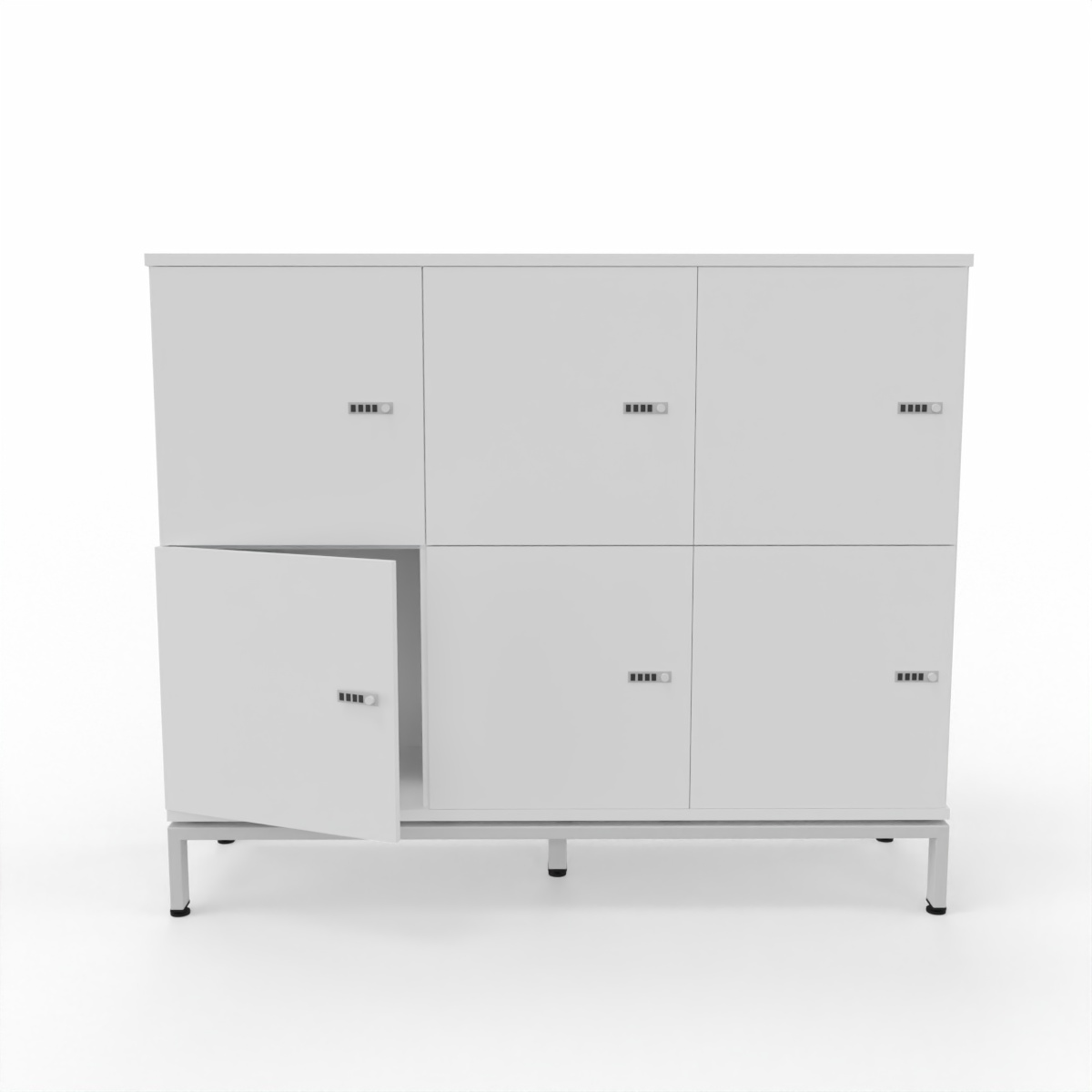 This particular collection of lockers all have combination locks and can be placed at the end of a 2-way or dual desk.