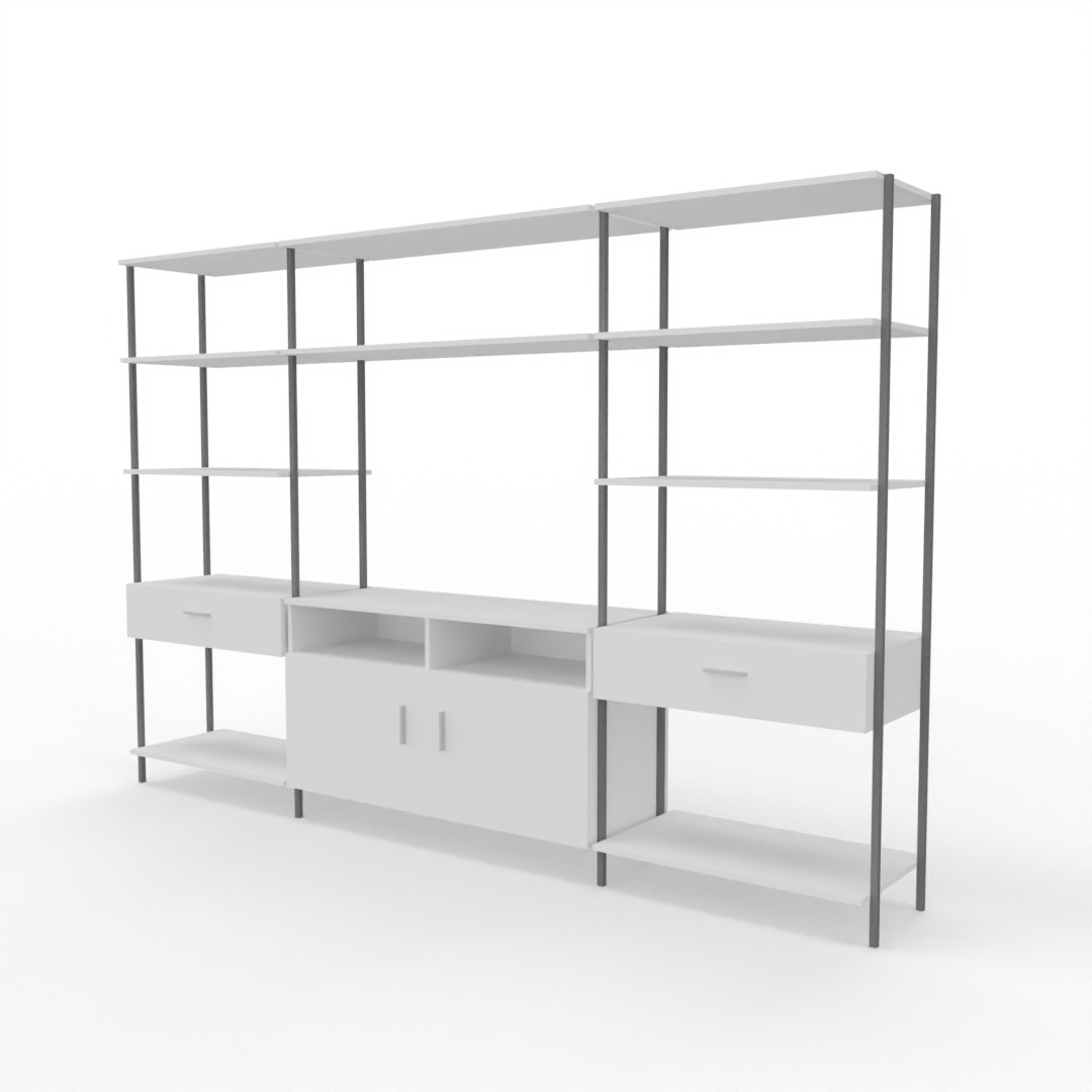 NB: ASSEMBLY WILL BE REQUIRED TO ATTACHED STEEL TO STORAGE & SHELVES