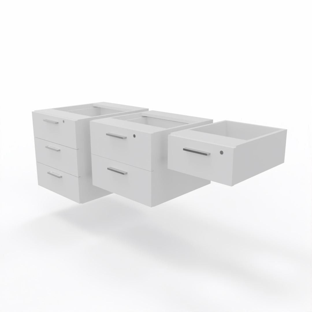 The 3 drawers fitted pedestal (standard) can be fitted to the underside of a panel desktop.