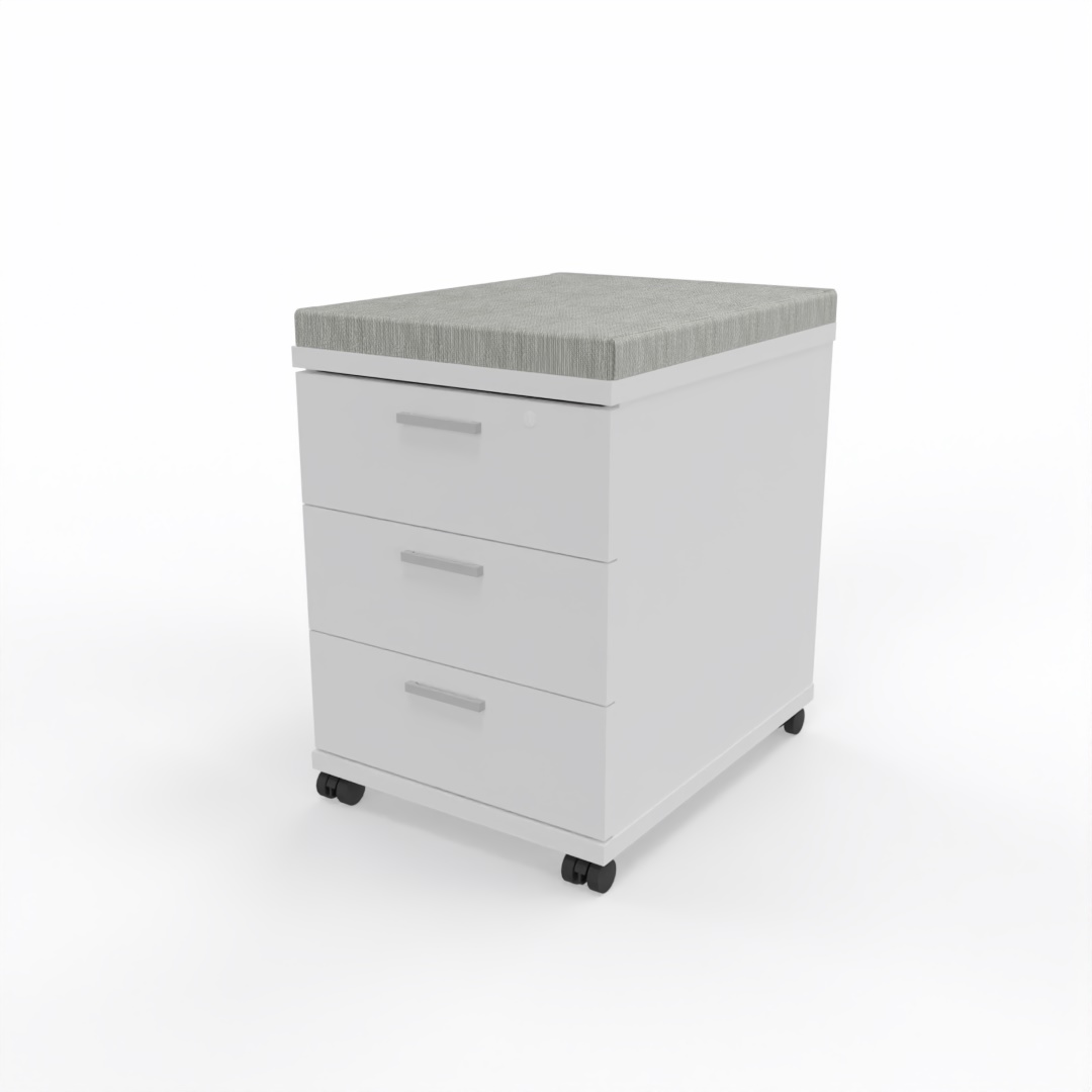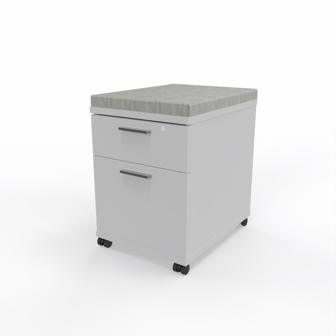 A mobile pedestal that doubles as guest seating is the solution to a bustling office where team members work together and provide feedback on each-other’s work. The cushioned top, strong casters and solid base make for a sturdy and comfortable seat.