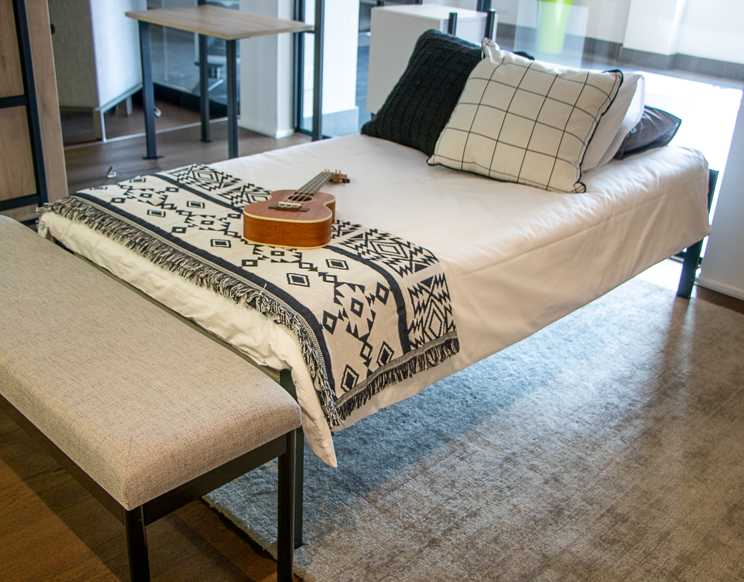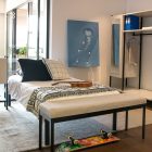 A steel frame bed that ships flat-packed, is easy to assemble, strong and modern.